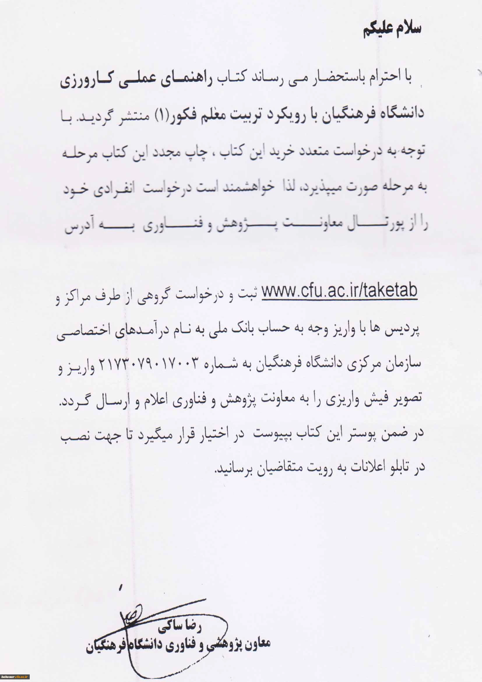 امتیاز دهید : راهنمای کارورزی دانشگاه فرهنگیان با رویکرد تربیت معلم فکور(1) 2 چهارشنبه 18 آذر 1394 ساعت 11:23