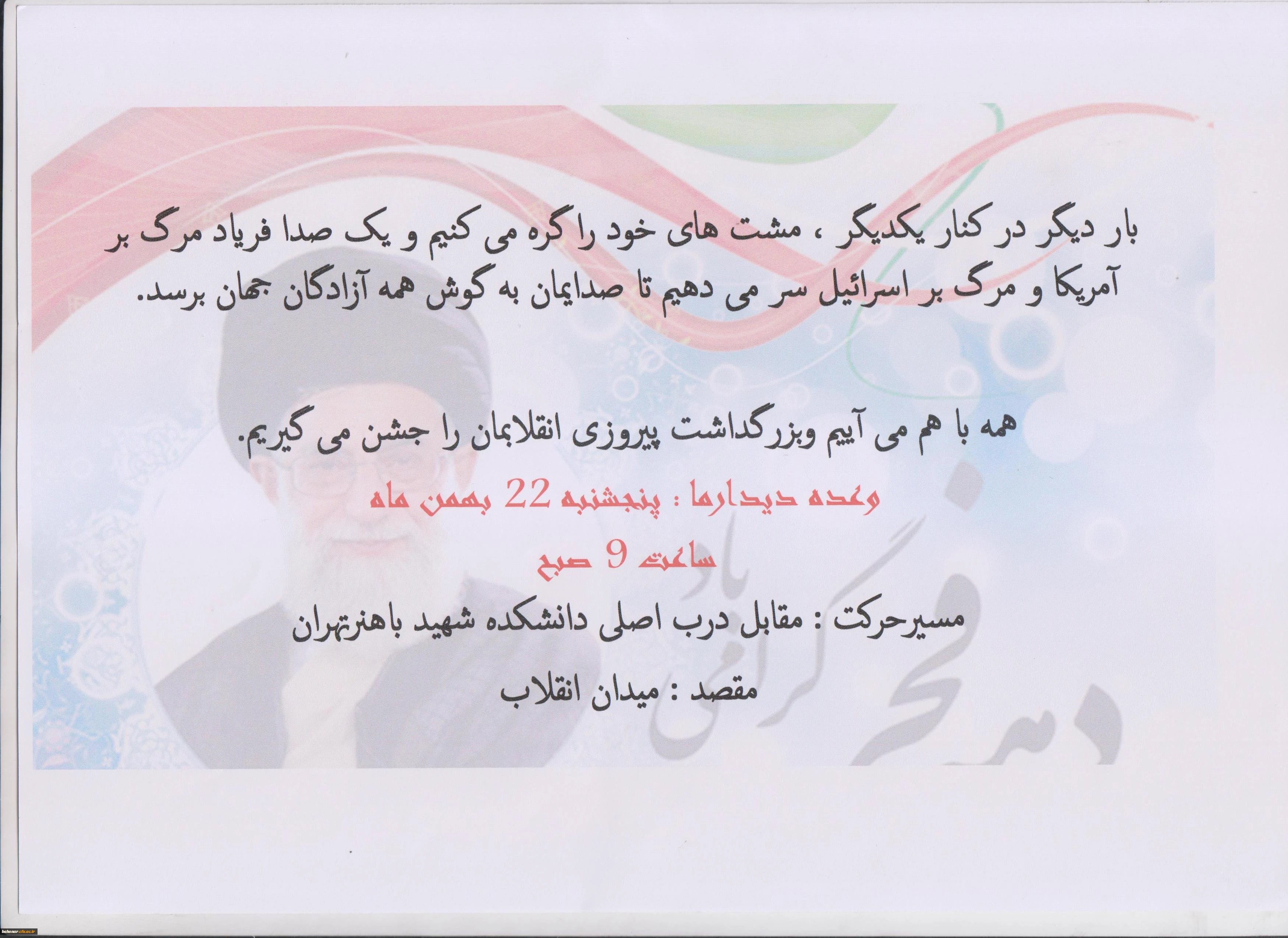 مسیر حرکت راهپیمایی 22 بهمن ماه 2