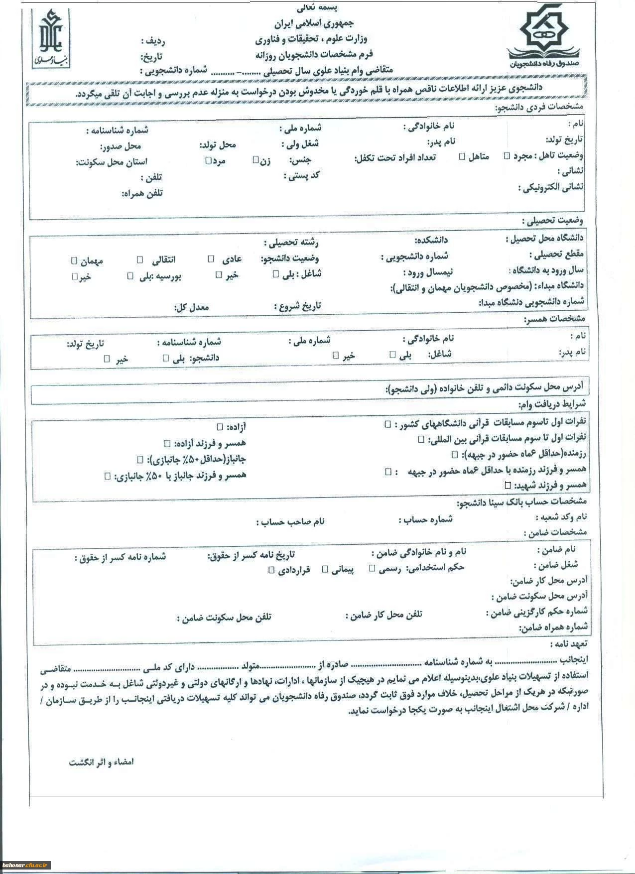 فرم های مورد نیاز دانشجویان کارشناسی ارشد