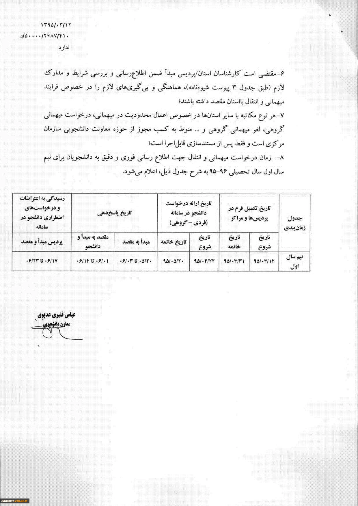 تقویم اجرایی مربوط به انتقال و میهمان 3