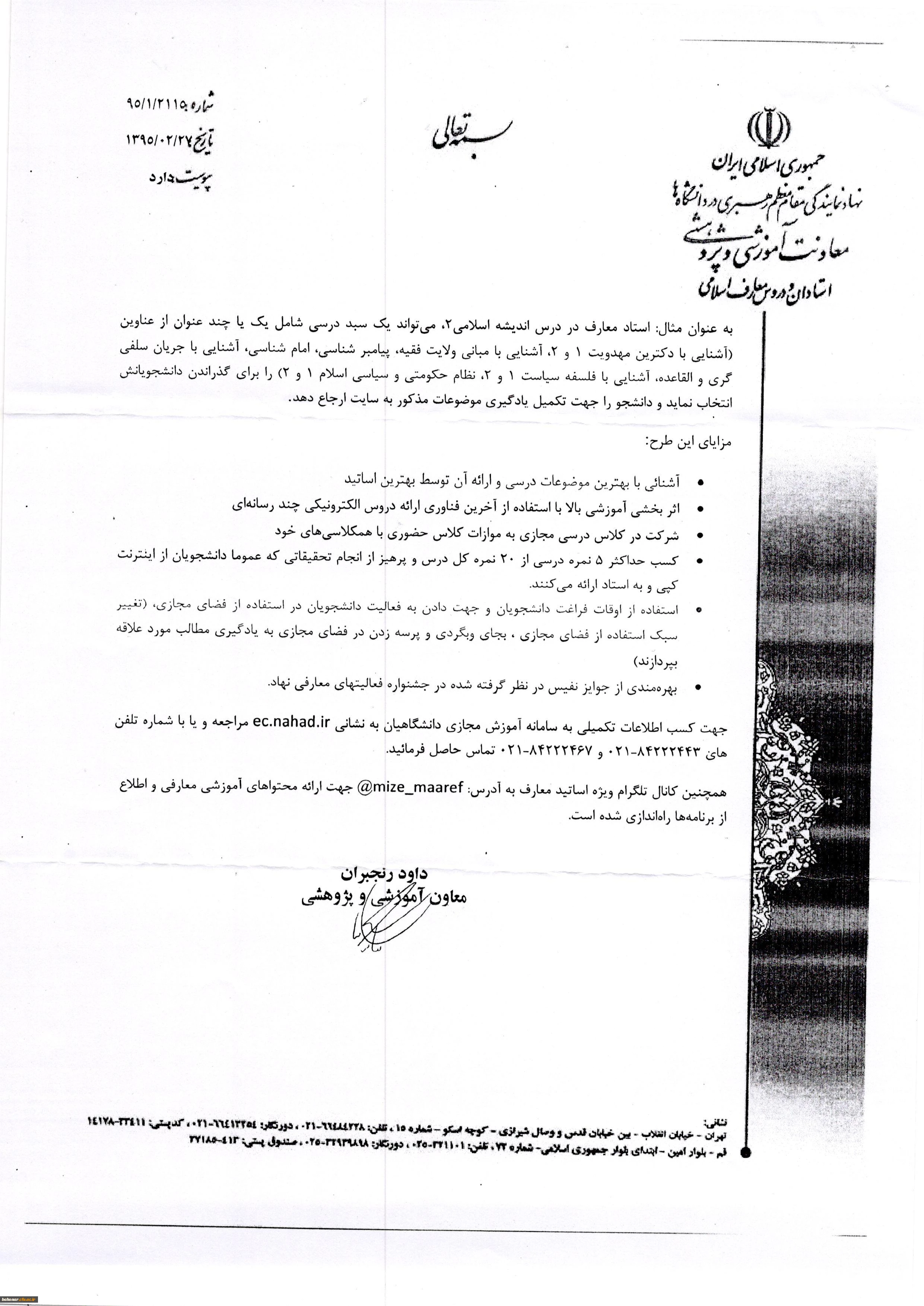 بسترسازی و فراهم آوردن تسهیلات در جهت استفاده از شیوه های نوین دروس معارف اسلامی 4