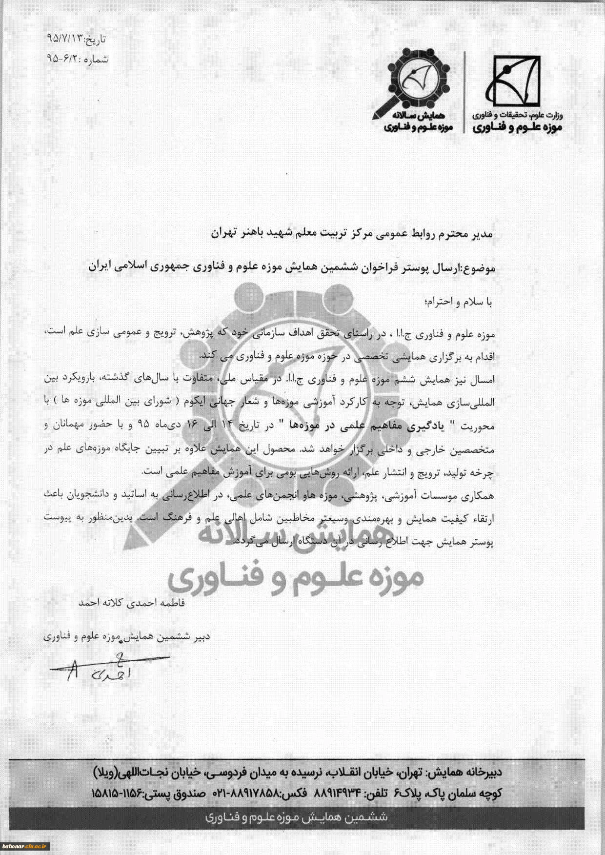 ششمین همایش موزه علوم و فناوری جمهوری اسلامی ایران 2