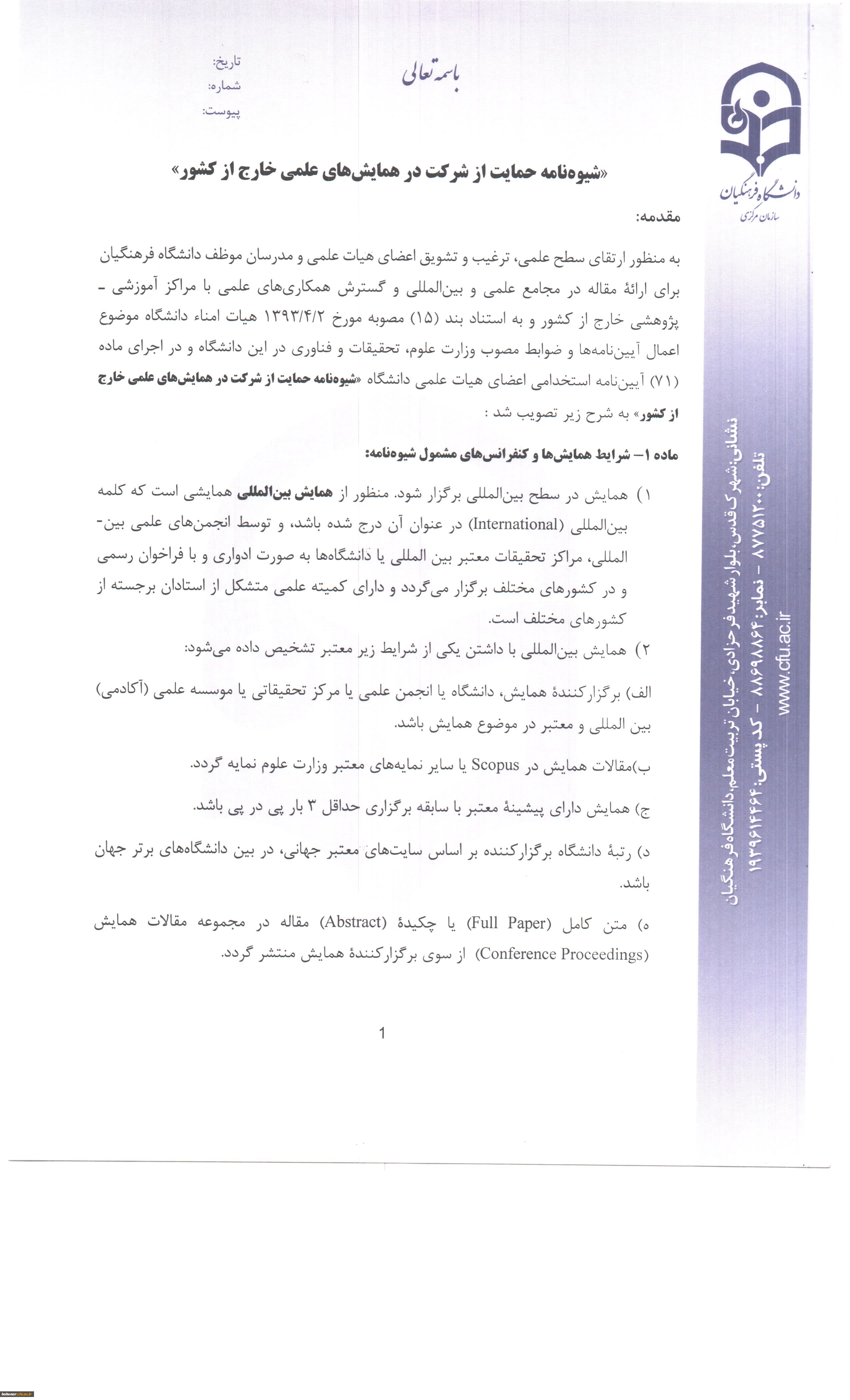 امتیاز دهید : شیوه نامه حمایت از شرکت در همایش های علمی خارج از کشور 2 سهشنبه 17 اسفند 1395 ساعت 10:27