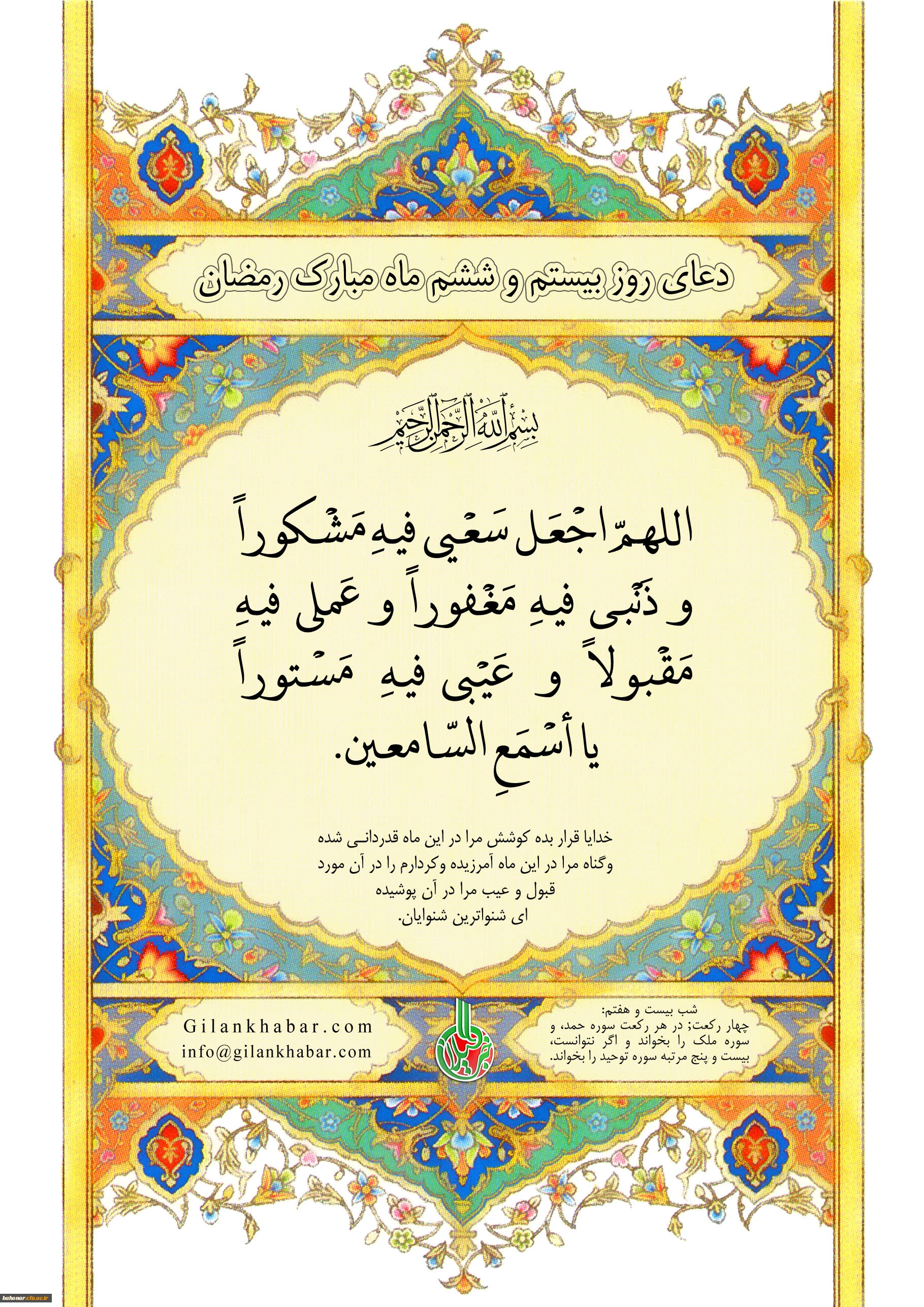 دعای روز بیست و ششم ماه مبارک رمضان
