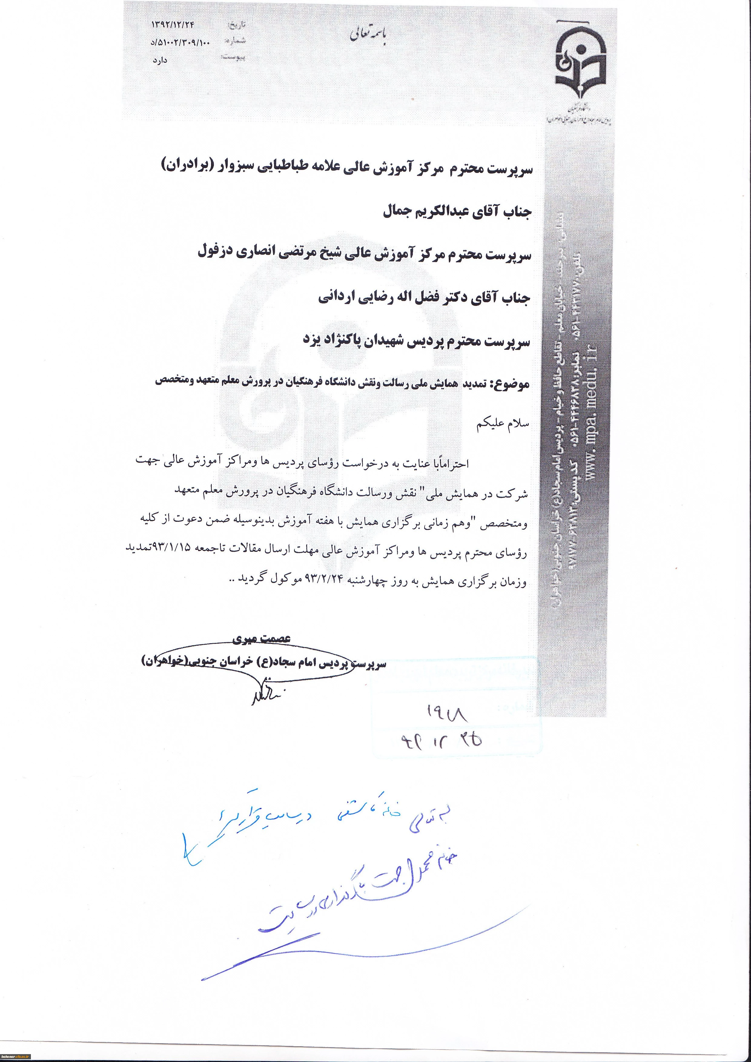 امتیاز دهید : تمدید همایش ملی رسالت و نقش دانشگاه فرهنگیان در پرورش معلم متعهد و متخصص یکشنبه 25 اسفند 1392 ساعت 14:23