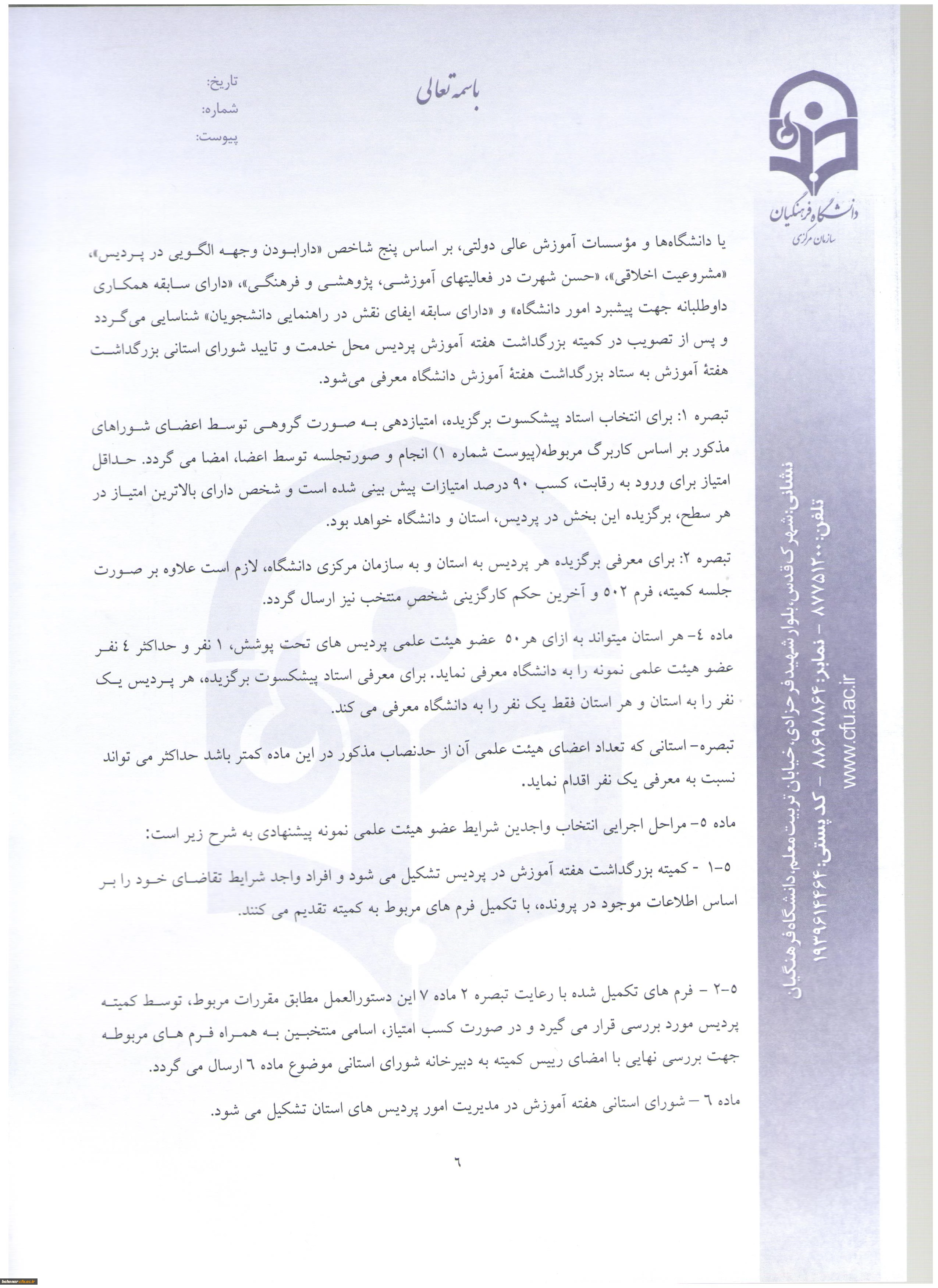 دستور العمل نحوه انتخاب استاد نمونه و پیشکسوت نمونه 13
