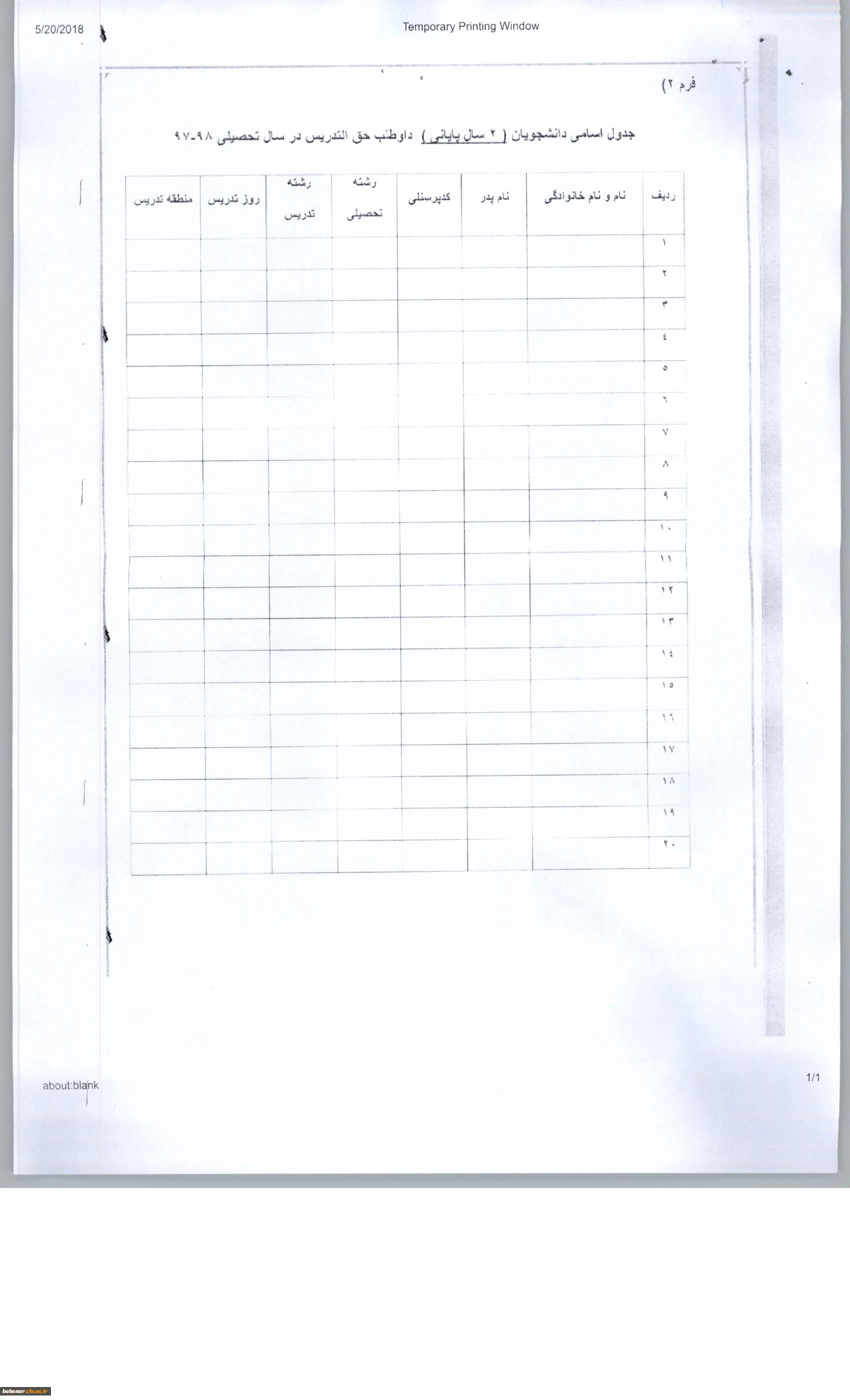 فرم های مورد نیاز دانشجویان