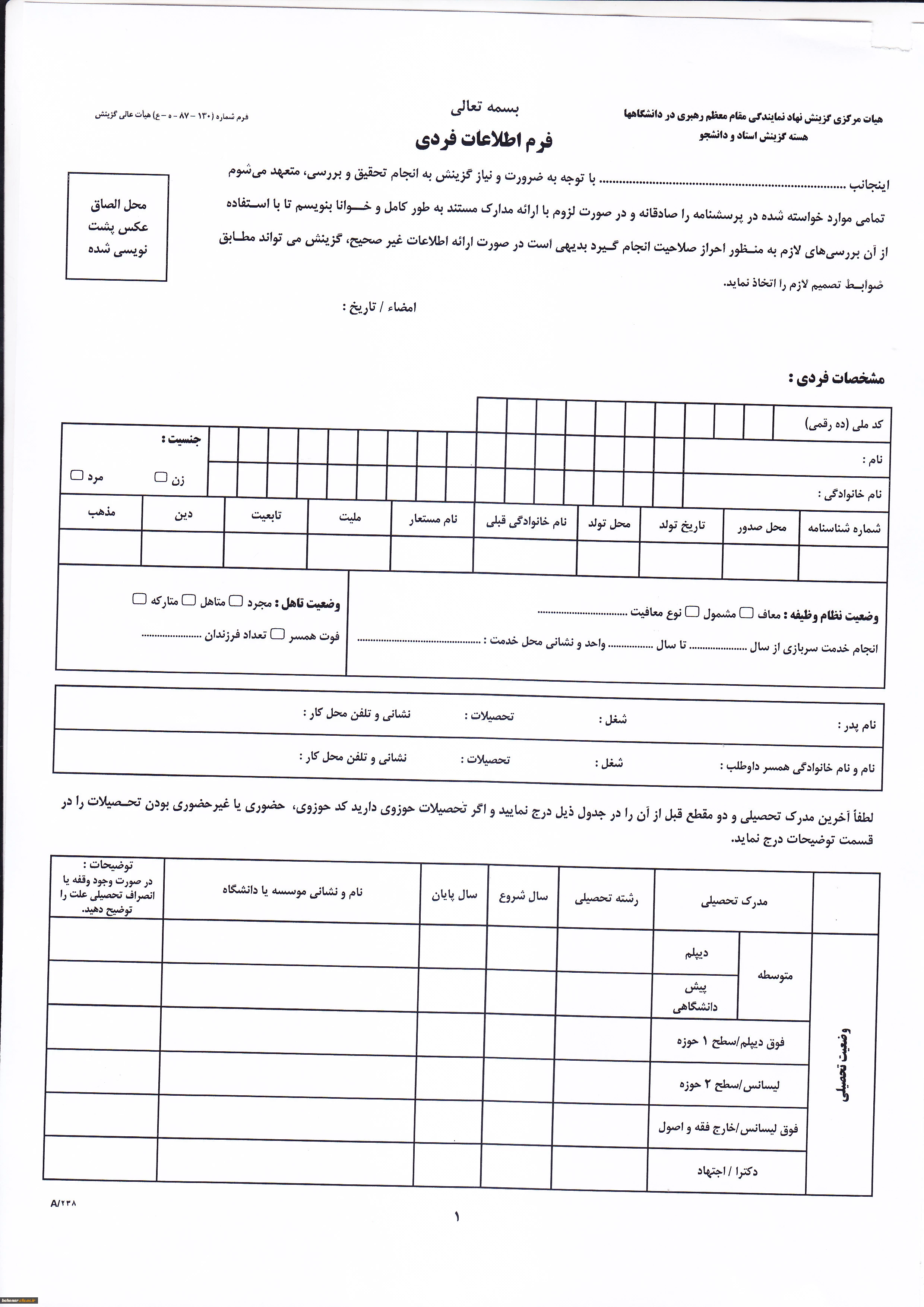 فرم های مورد نیاز دانشجویان کارشناسی ارشد