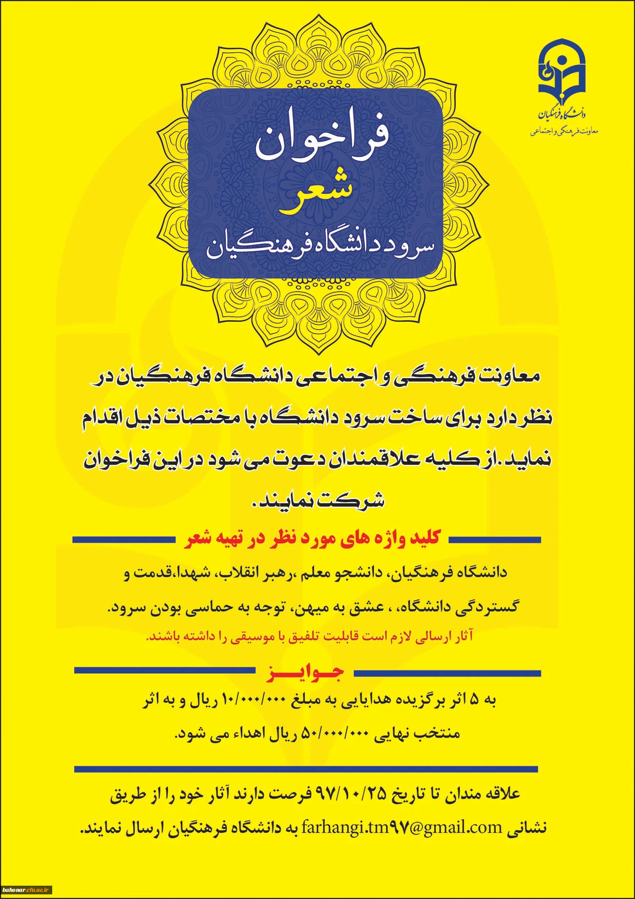 فراخوان شعرسرود رسمی دانشگاه فرهنگیان 2