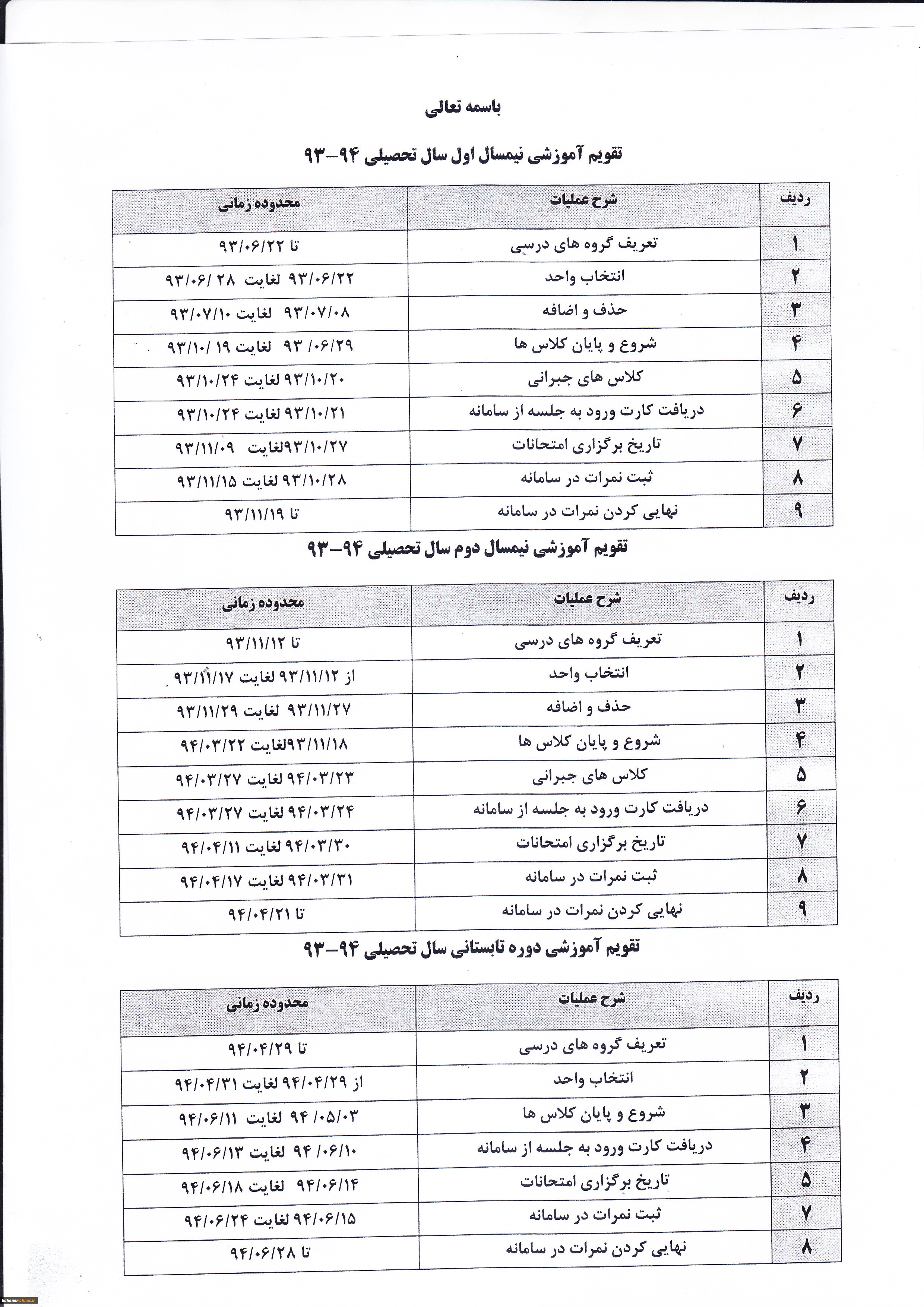 تقویم آموزشی نیمسال اول سال تحصیلی 94-93 2