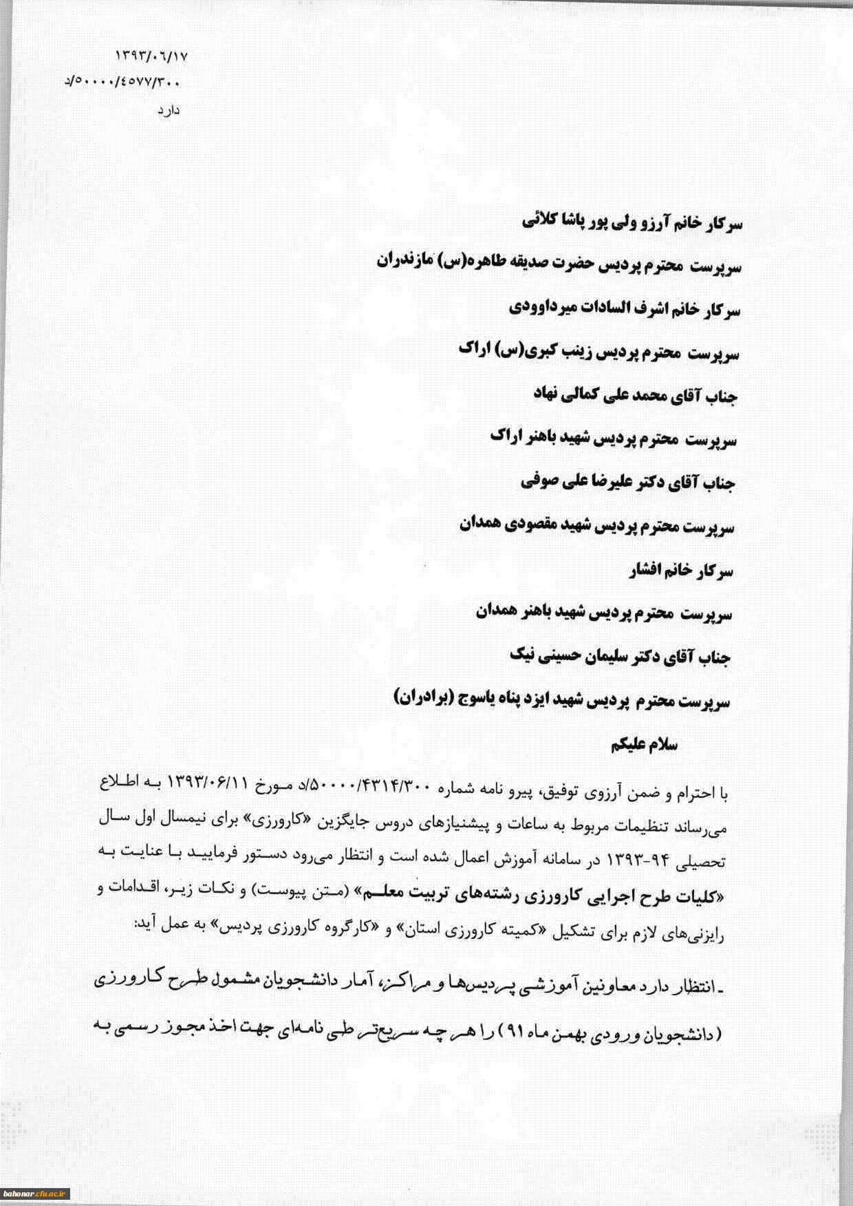 کلیات طرح اجرایی کارورزی رشته های تربیت معلم 2