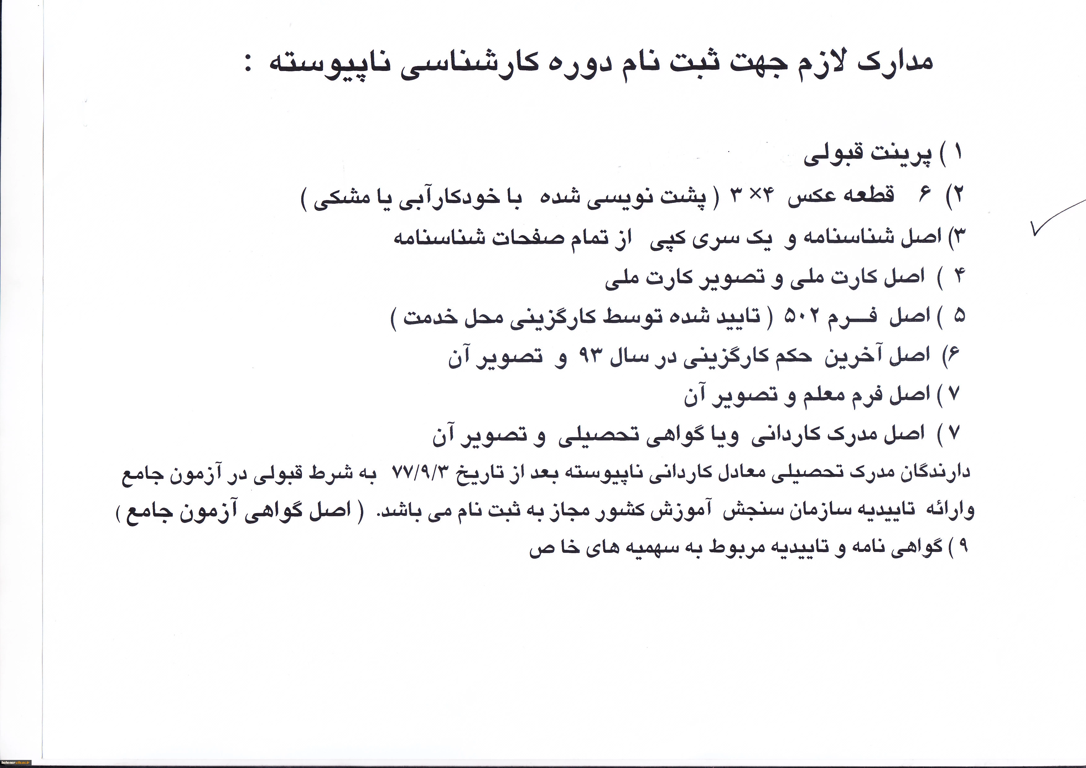 امتیاز دهید : مدارک مورد نیاز جهت ثبت نام پذیرفته شدگان مقطع کارشناسی ناپیوسته 3 پنجشنبه 3 مهر 1393 ساعت 13:19
