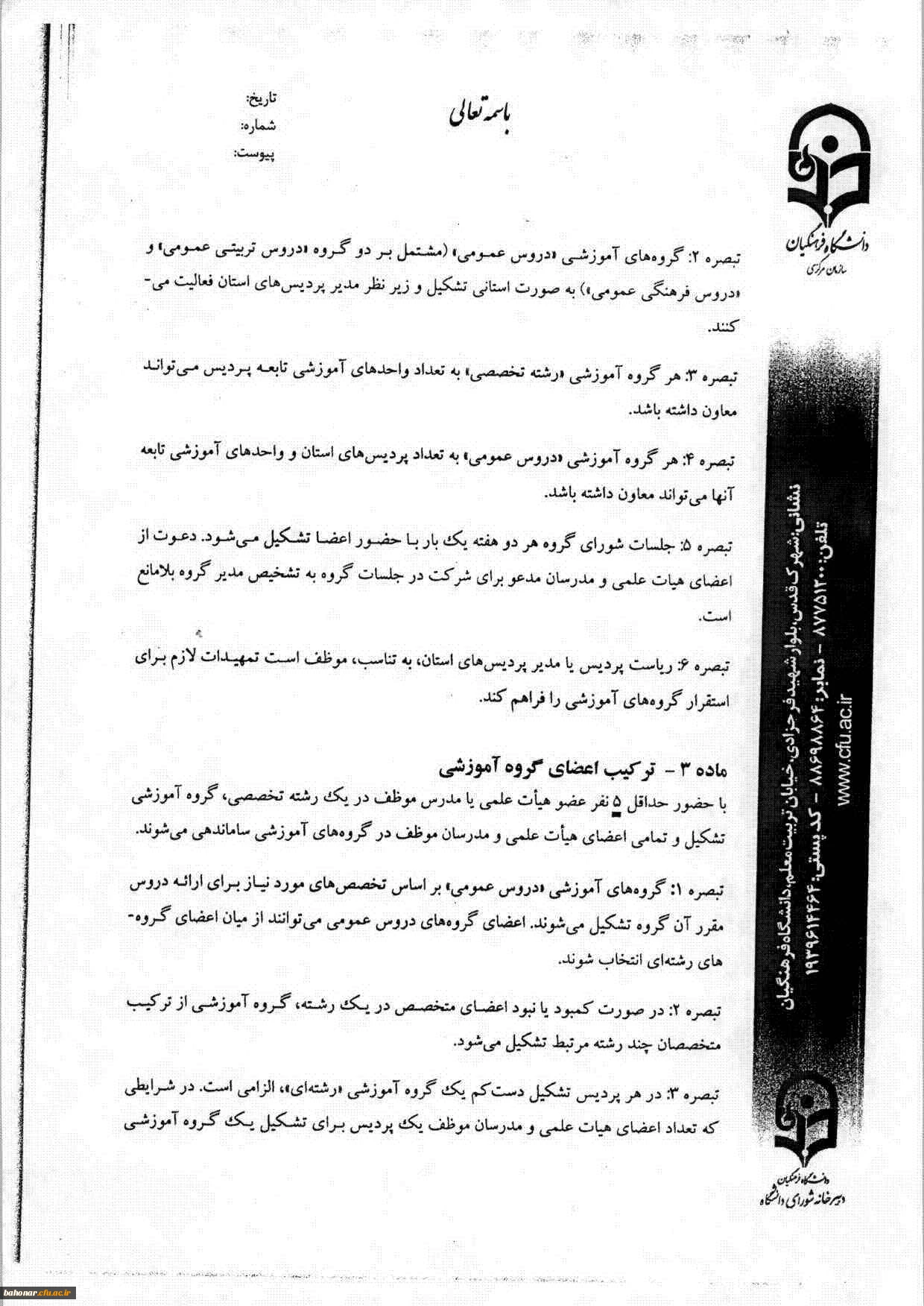 شیوه نامه اجرایی تشکیل و فعالیت گروه های آموزشی دانشگاه فرهنگیان 5