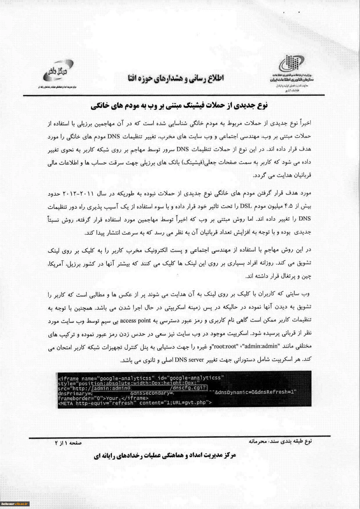 امتیاز دهید : اطلاع رسانی در خصوص حملات فیشینگ مبتنی بر وب به مودم های خانگی 3 سهشنبه 8 مهر 1393 ساعت 12:45