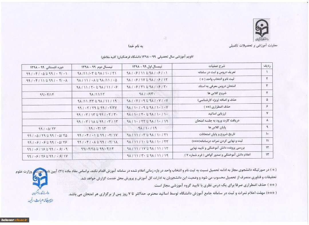 تقویم آموزشی مرکز آموزش عالی شهید باهنر 2