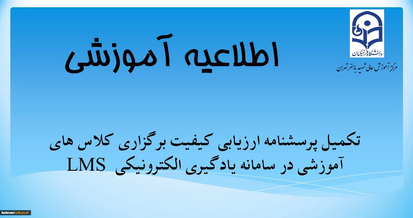 تکمیل پرسشنامه ارزیابی کیفیت برگزاری کلاس های آموزشی در سامانه یادگیری الکترونیکی LMS 2