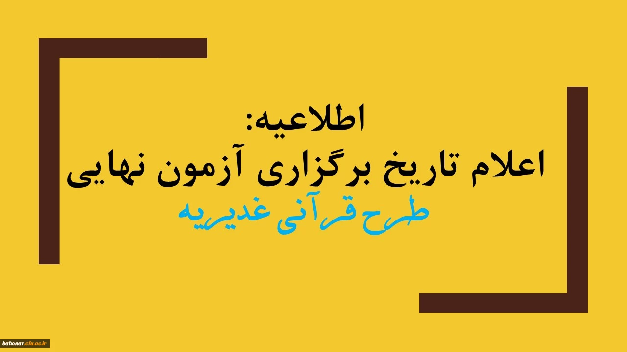 امتیاز دهید : اطلاعیه: اعلام تاریخ برگزاری آزمون نهایی طرح قرآنی غدیریه 2 چهارشنبه 5 شهریور 1399 ساعت 14:47