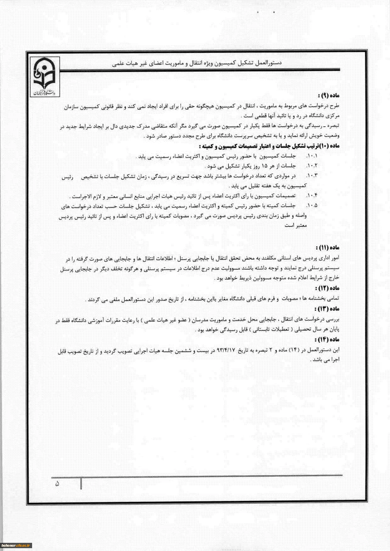 دستور العمل کمیسیون ویژه انتقال و ماموریت 6