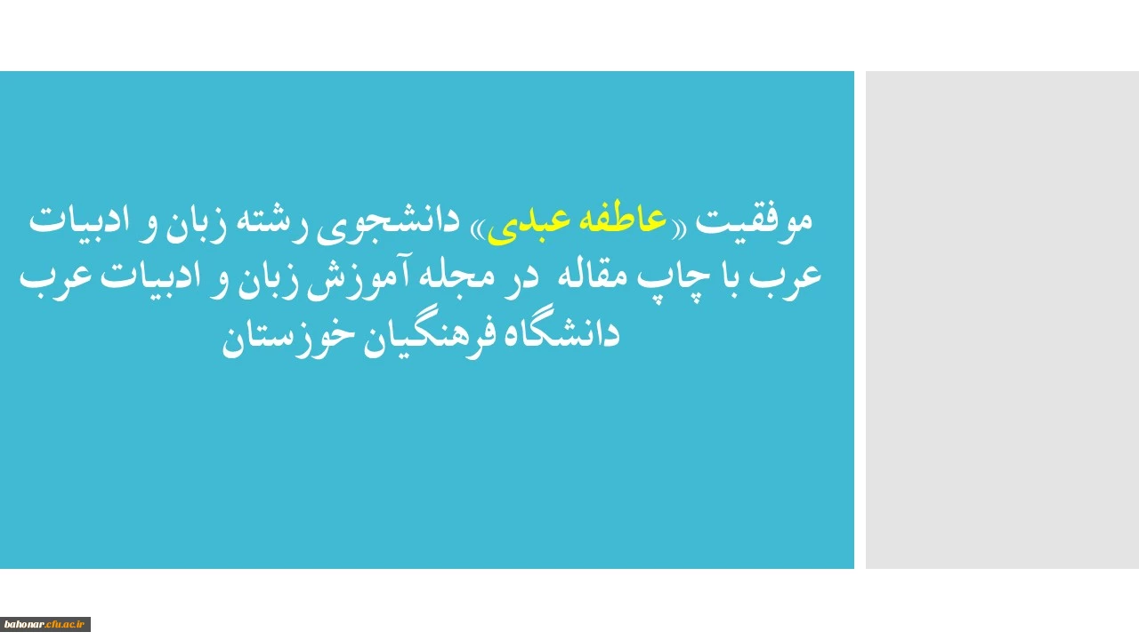 موفقیت «عاطفه عبدی» دانشجوی رشته زبان و ادبیات عرب با چاپ مقاله در مجله آموزش زبان و ادبیات عرب دانشگاه فرهنگیان خوزستان 2