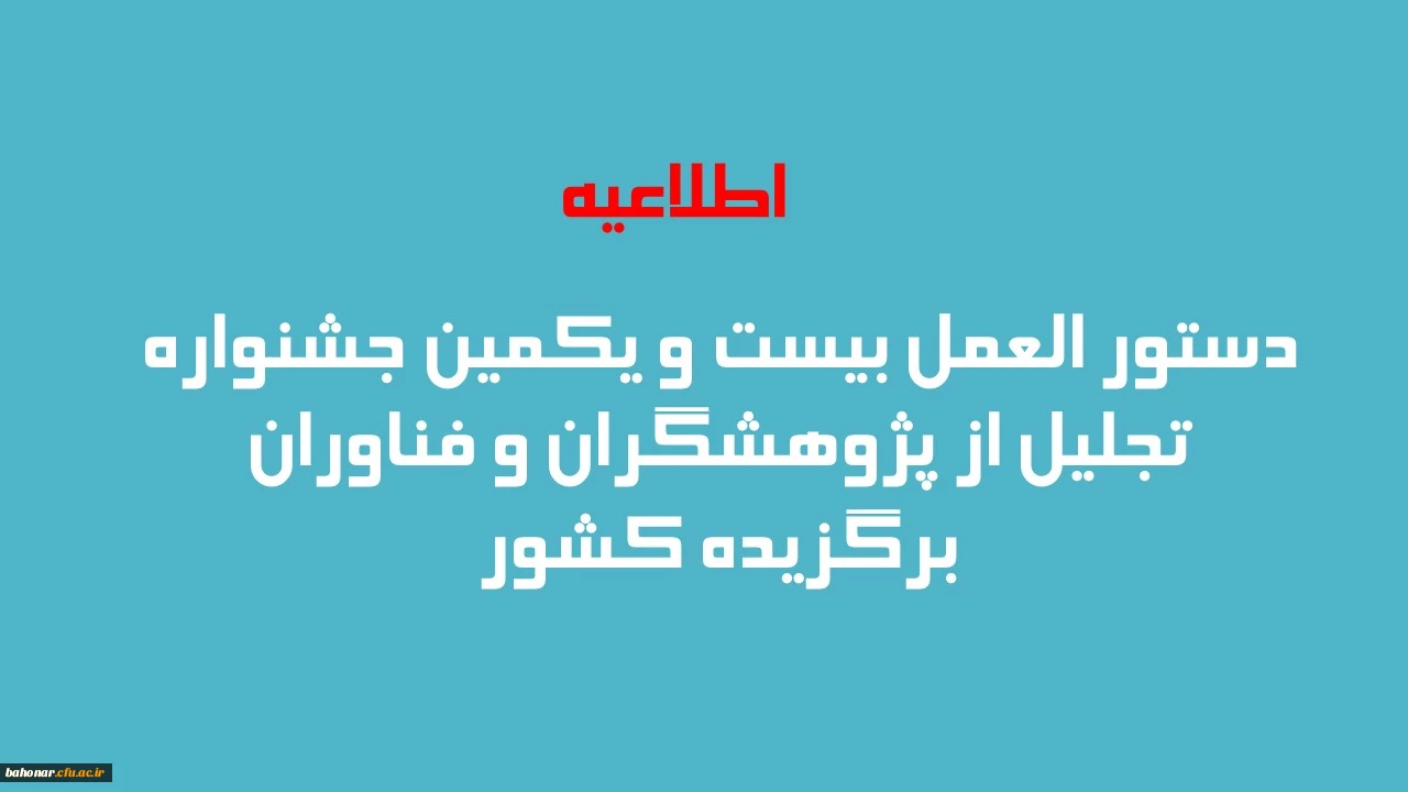 دستور العمل بیست و یکمین جشنواره تجلیل از پژوهشگران و فناوران برگزیده کشور 2