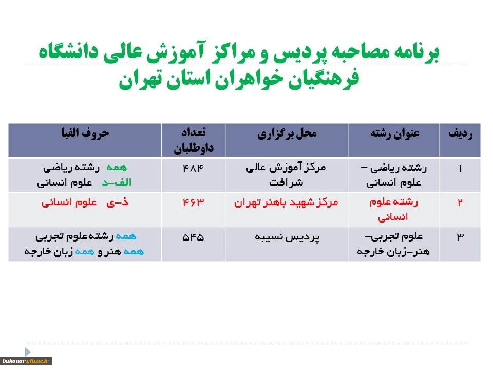 برنامه مصاحبه پردیس و مراکز آموزش عالی دانشگاه فرهنگیان خواهران استان تهران 3