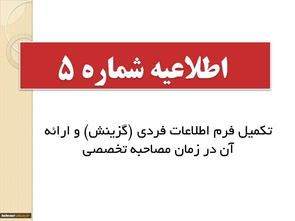 اطلاعیه شماره 5: تکمیل فرم گزینش و ارائه آن به در زمان مصاحبه تخصصی 2