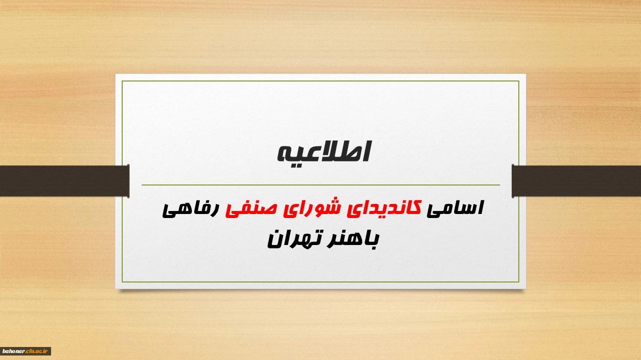 اسامی کاندیدای شورای صنفی رفاهی باهنر تهران 2