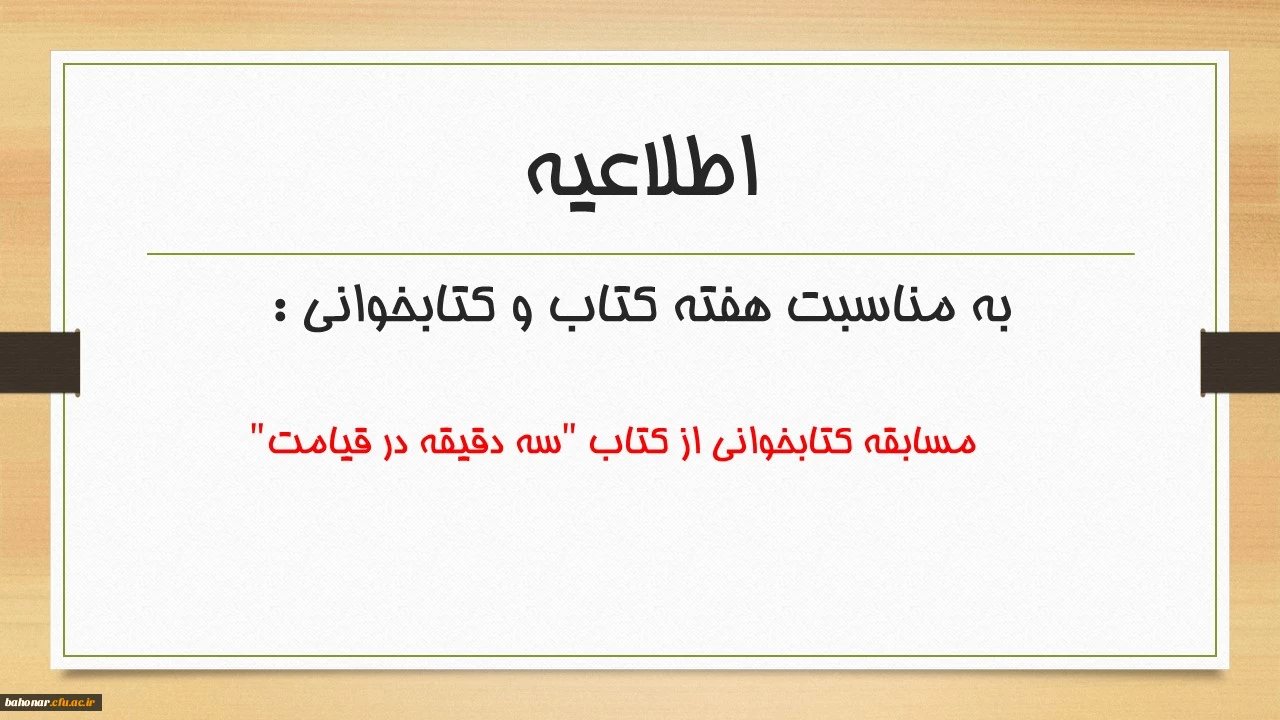 مدیریت امور پردیس های استان تهران به مناسبت هفته کتاب و کتابخوانی برگزار می کند: مسابقه کتابخوانی از کتاب "سه دقیقه در قیامت" 2