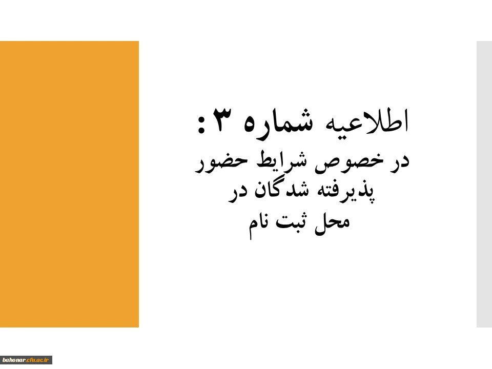 اطلاعیه شماره 3 : در خصوص شرایط حضور پذیرفته شدگان مرکز شهید باهنر در محل ثبت نام 2
