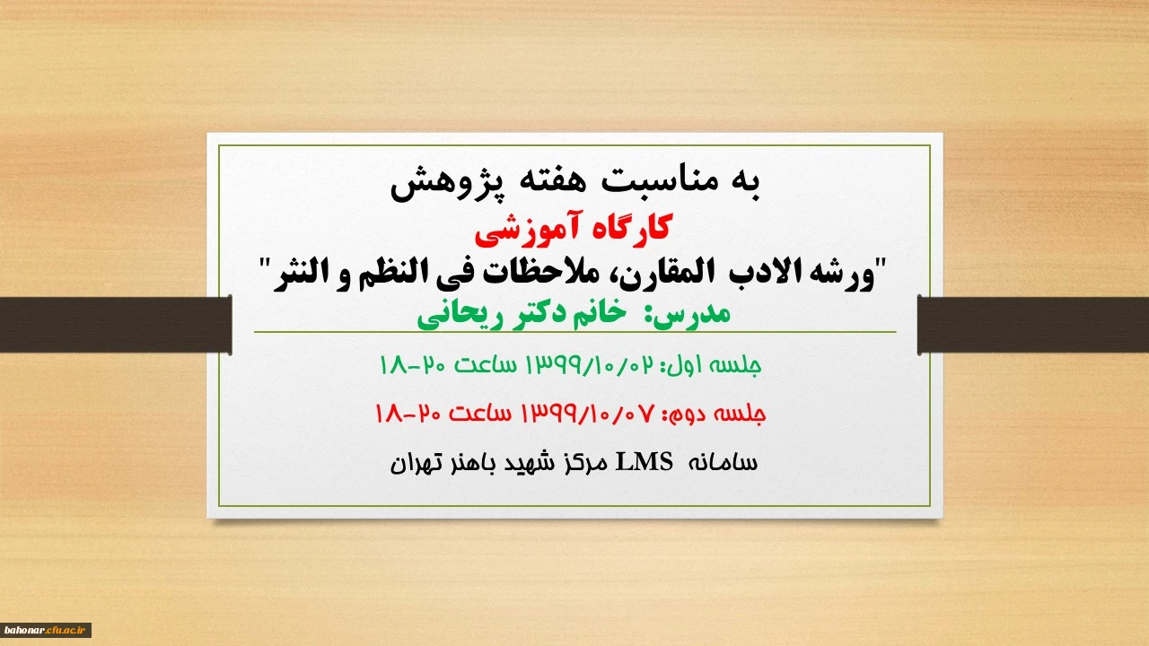 امتیاز دهید : کارگاه آموزشی "ورشه الادب المقارن، ملاحظات فی النظم و النثر" 2 دوشنبه 1 دی 1399 ساعت 13:45