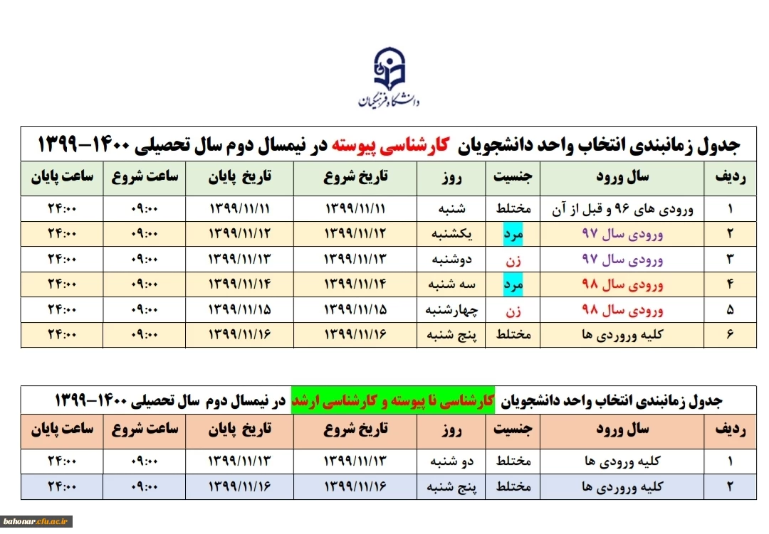 تقویم آموزشی در نیمسال دوم سال تحصیلی 1400-1399 2