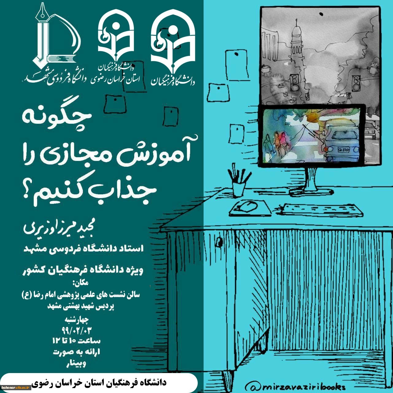 امتیاز دهید : برگزاری کارگاه پژوهشی مجازی باعنوان: «چگونه آموزش مجازی را جذاب کنیم» 2 یکشنبه 12 بهمن 1399 ساعت 12:44
