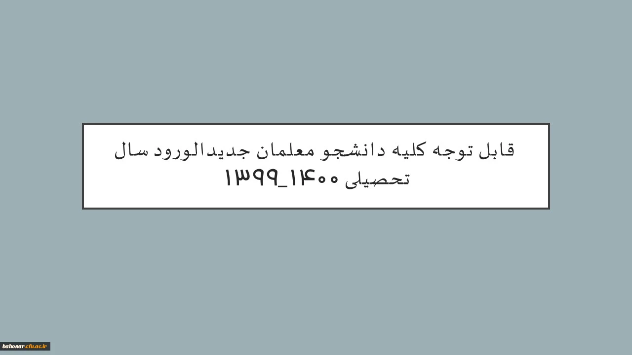 امتیاز دهید : قابل توجه کلیه دانشجو معلمان جدیدالورود سال تحصیلی 1400_۱۳۹۹ 2 چهارشنبه 15 بهمن 1399 ساعت 23:59