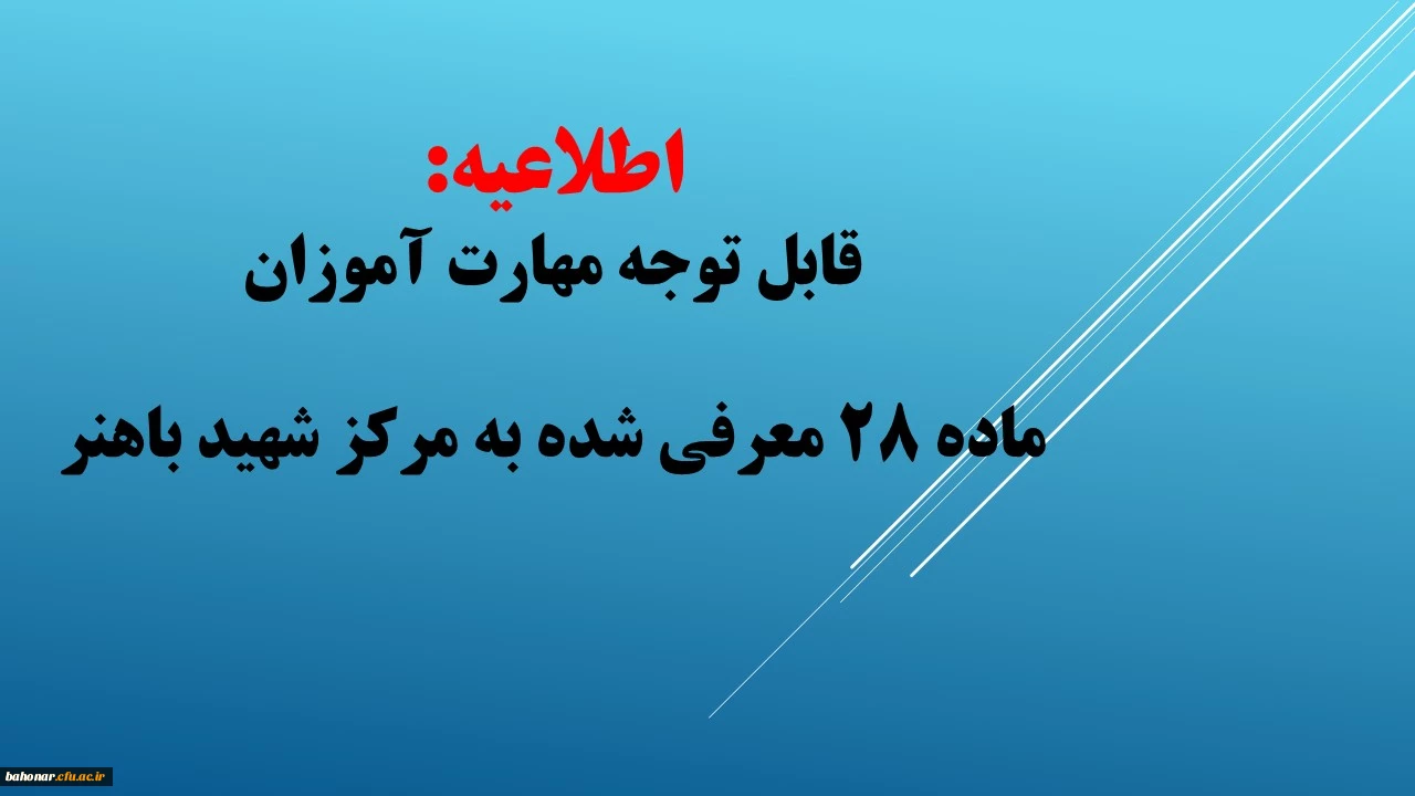 امتیاز دهید : اطلاعیه: قابل توجه مهارت آموزان ماده 28 معرفی شده به مرکز شهید باهنر 2 دوشنبه 3 خرداد 1400 ساعت 10:45