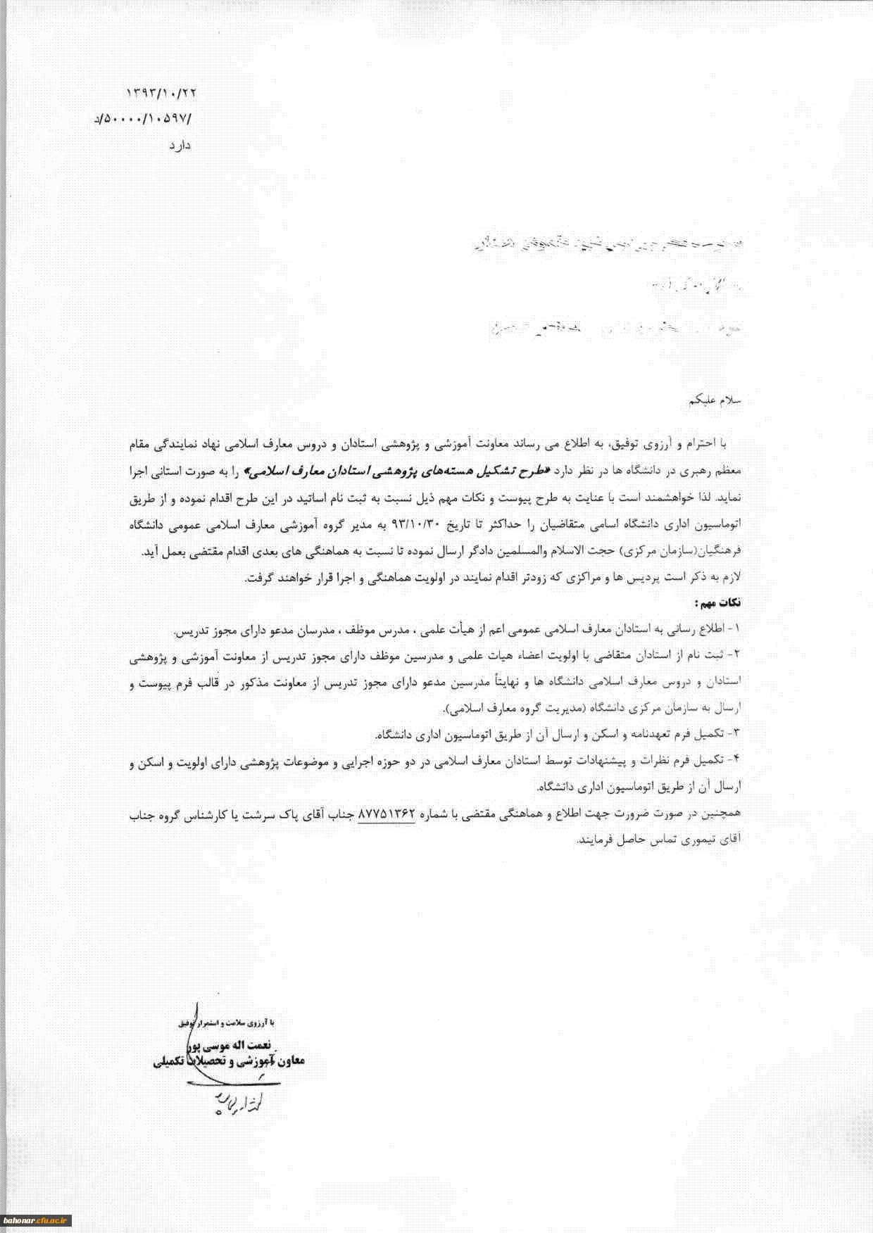طرح تشکیل هسته های پژوهشی استادان معارف اسلامی 2