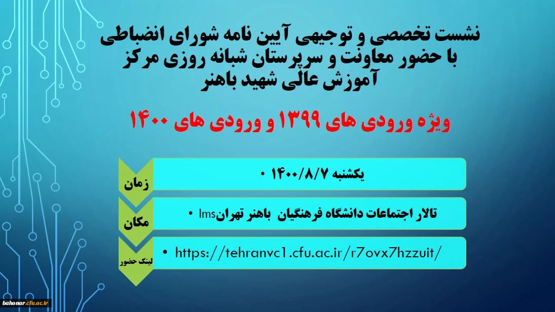 نشست تخصصی و توجیهی آیین نامه شورای انضباطی ویژه ورودی های 1399 و 1400 2