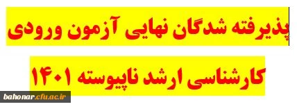 امتیاز دهید : ثبت نام و پذیرش حضوری کارشناسی ارشد ناپیوسته سال 1401 2 دوشنبه 21 شهریور 1401 ساعت 14:34