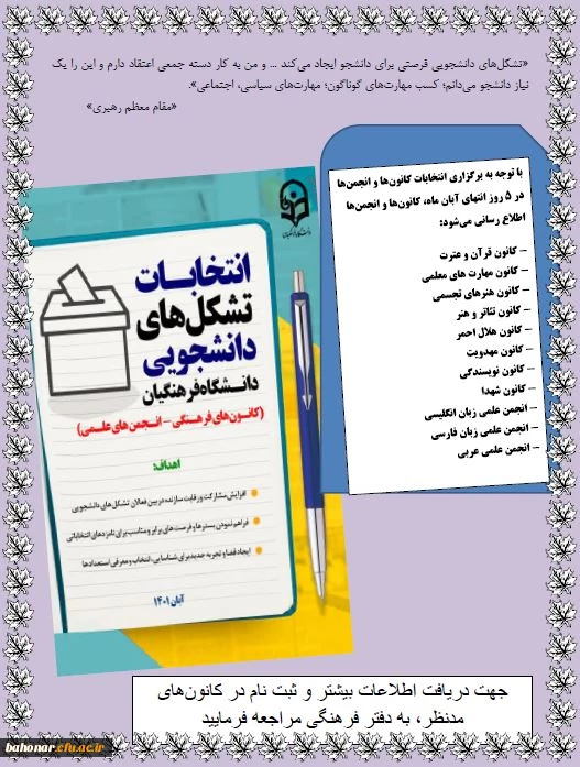 انتخابات تشکل های دانشجویی دانشگاه فرهنگیان ( کانون های فرهنگی - انجمن های علمی ) 2