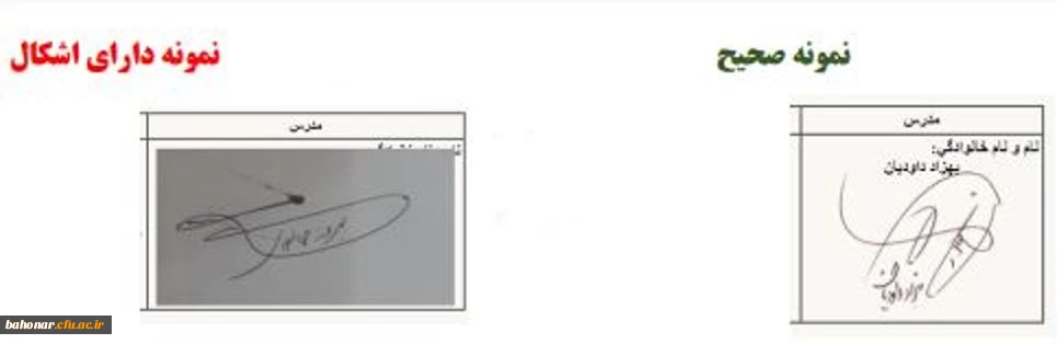بارگذاری امضاء به شکل صحیح بمنظور پرداخت های حق التدریس اساتید مرکز شهید باهنر 3