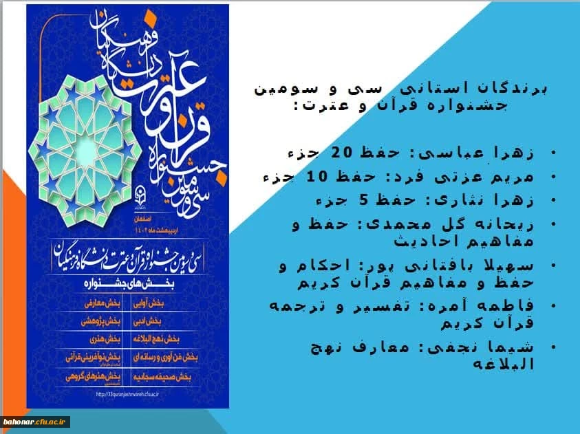 برندگان استانی سی و سومین جشنواره قرآن و عترت 2