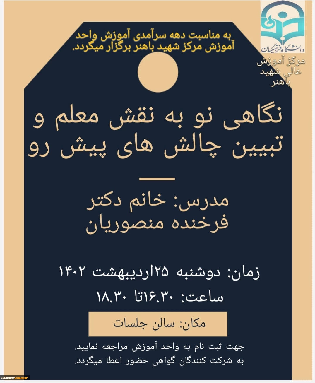 امتیاز دهید : کارگاه آموزشی نگاهی نو به نقش معلم و تبیین چالش های پیش رو 2 یکشنبه 24 اردیبهشت 1402 ساعت 14:30