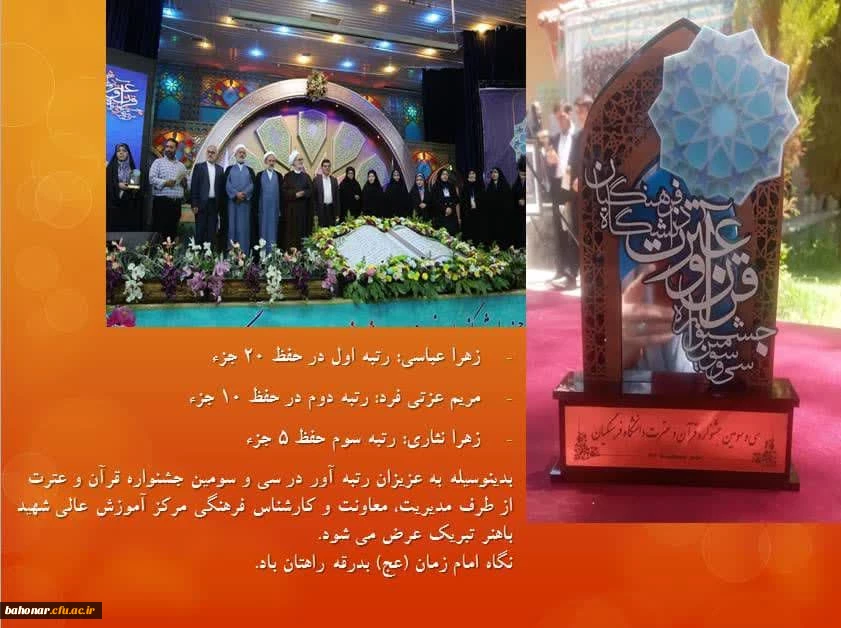 درخشش دانشجومعلمان مرکز آموزش عالی شهید باهنر در سی و سومین جشنواره قرآن و عترت دانشگاه فرهنگیان 2