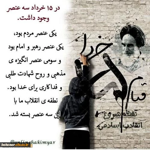 امتیاز دهید : گرامیداشت یوم الله 15 خرداد _ پانزده خرداد مبدأ نهضت اسلامی ایران است. 3 شنبه 13 خرداد 1402 ساعت 13:42