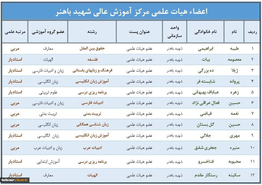 اعضاء هیئت علمی مرکز آموزش عالی شهید باهنر تهران 2