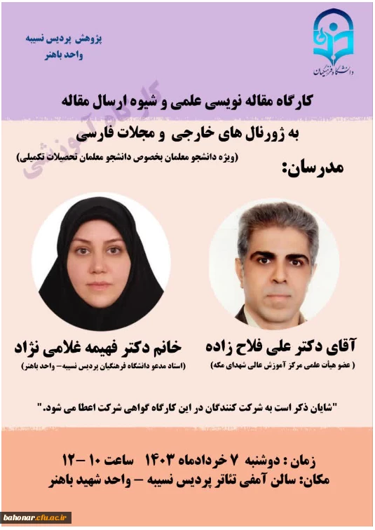 امتیاز دهید : کارگاه مقاله نویسی علمی و شیوه ارسال مقاله به ژورنال های خارجی و مجلات فارسی 2 شنبه 5 خرداد 1403 ساعت 14:27