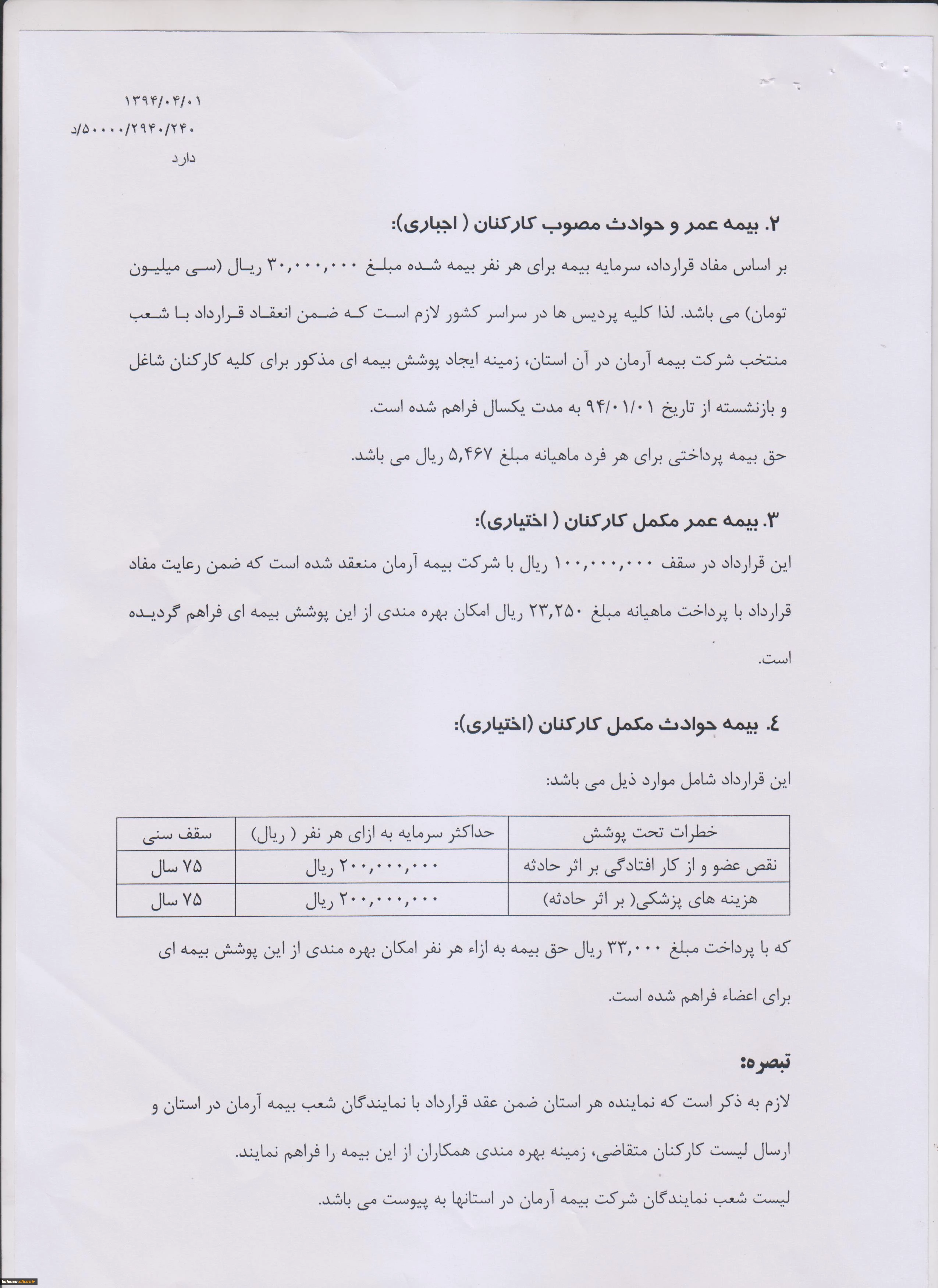 پوشش بیمه تکمیلی درمان کارکنان دانشگاه فرهنگیان ( بیمه آرمان ) 2