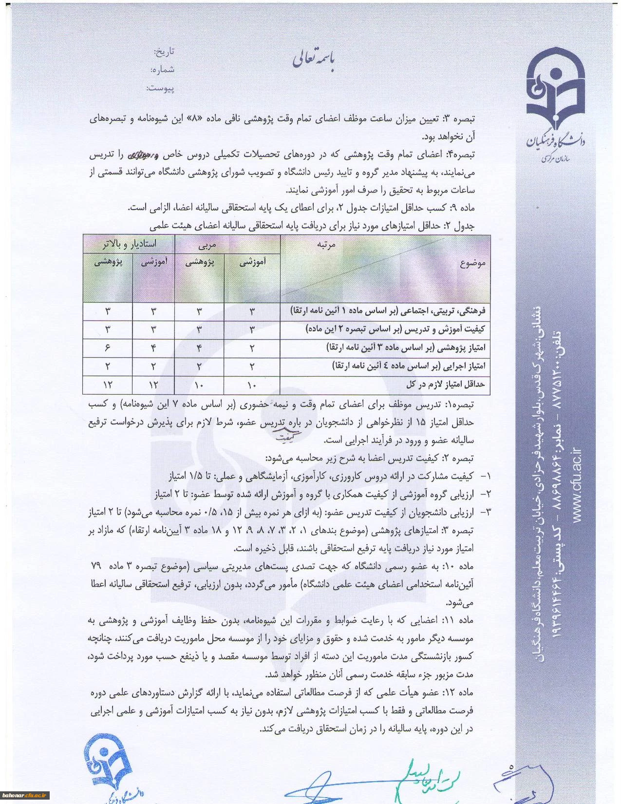 شیوه نامه داخلی اعطای ترفیع سالیانه اعضای هیات علمی 5